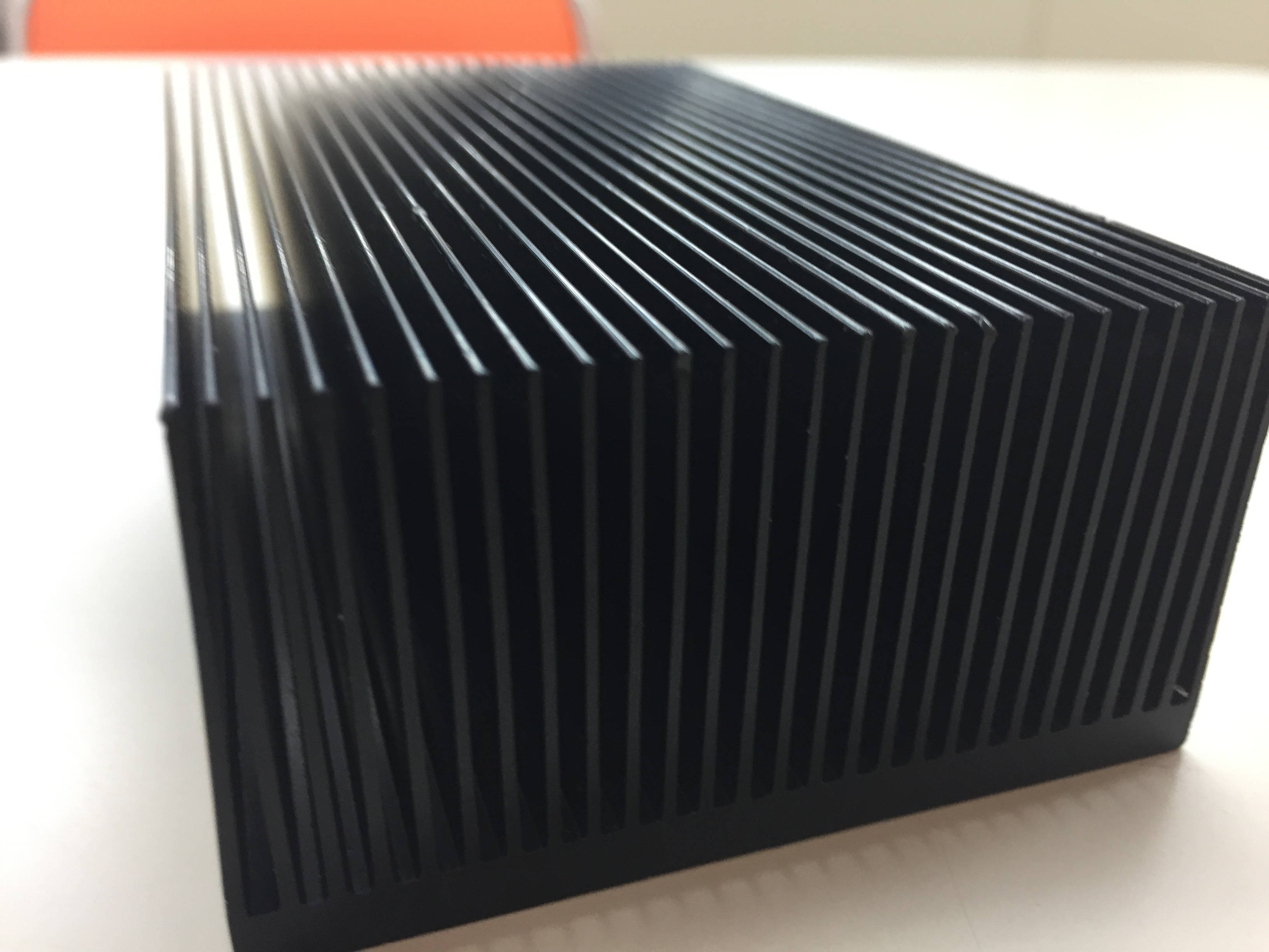 写真の通り溝の深さが異なるヒートシンクが2つあります。また、溝の両側は「壁」の状態になっています。つまり「フィン」と言われる形状です。このフィンに塗装で色をつけることが実に難しい、更にフィンの溝が深くなればなるほど、塗装の難易度は高くなります。