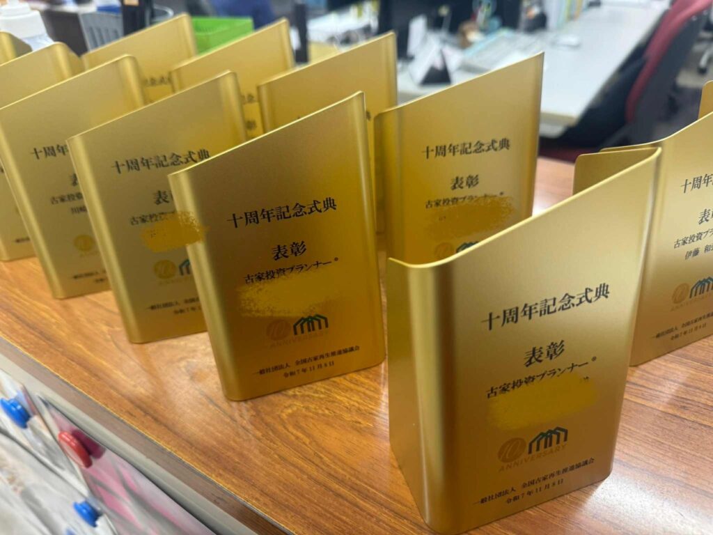 東大阪発、オブジェ風トロフィーのゴールド(金)調の塗装事例