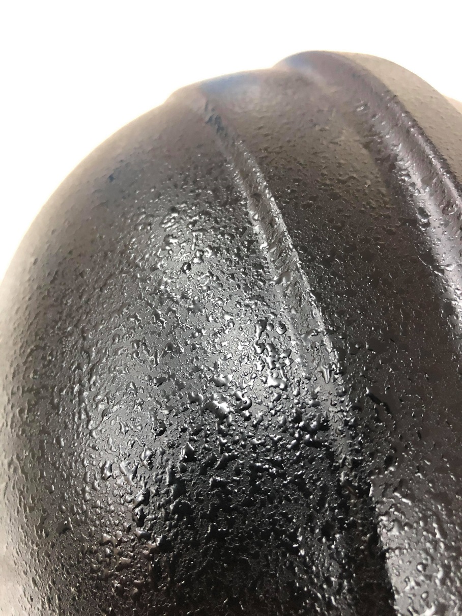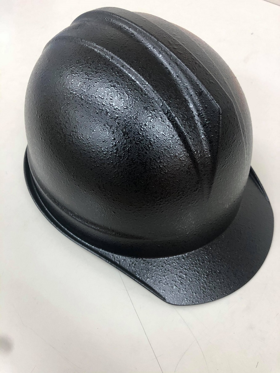 せっかくサンプルを作るなら、インパクトのあるデザインが差別化になると思い、オークマ工塗オリジナルの「南部鉄調」のヘルメットを作ってみました。
